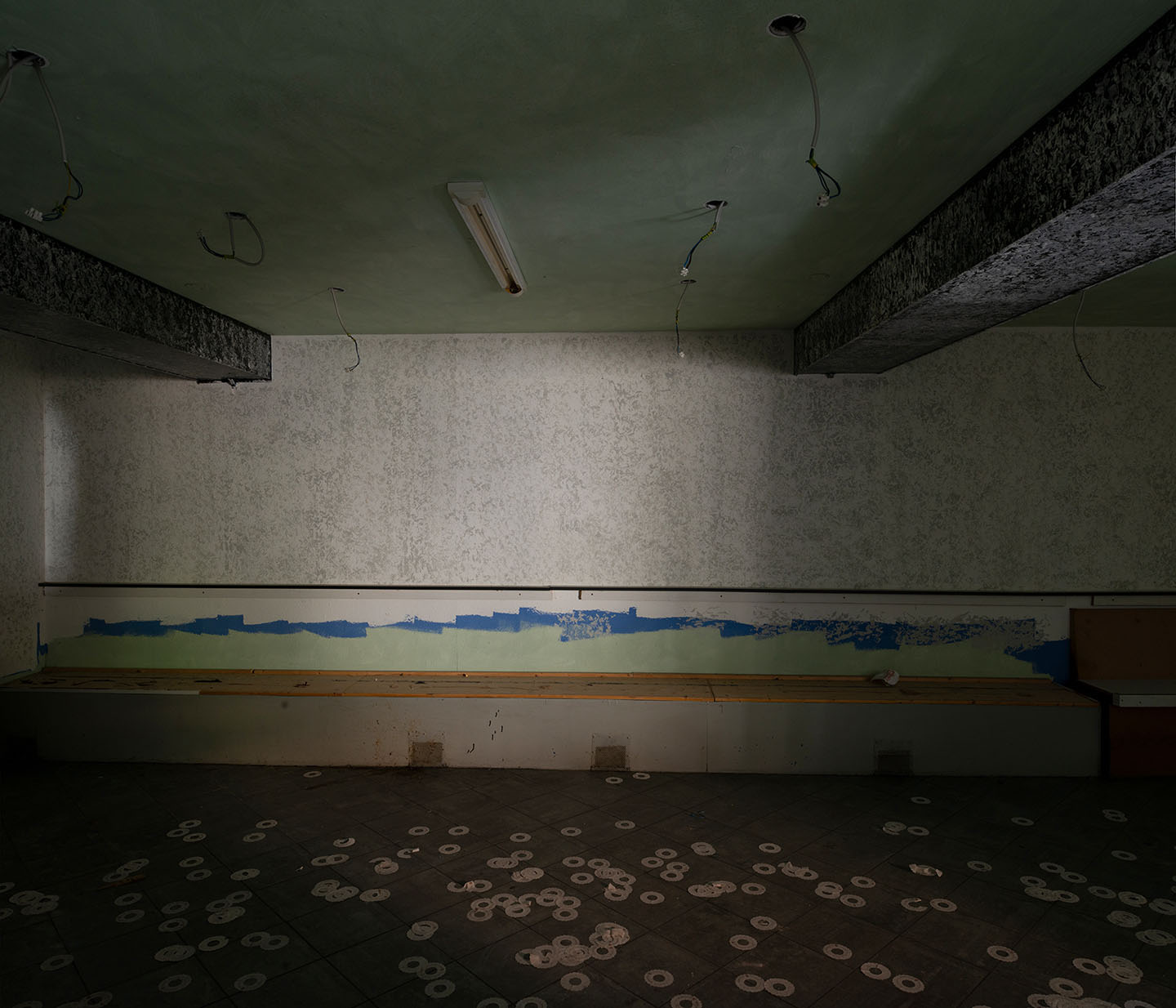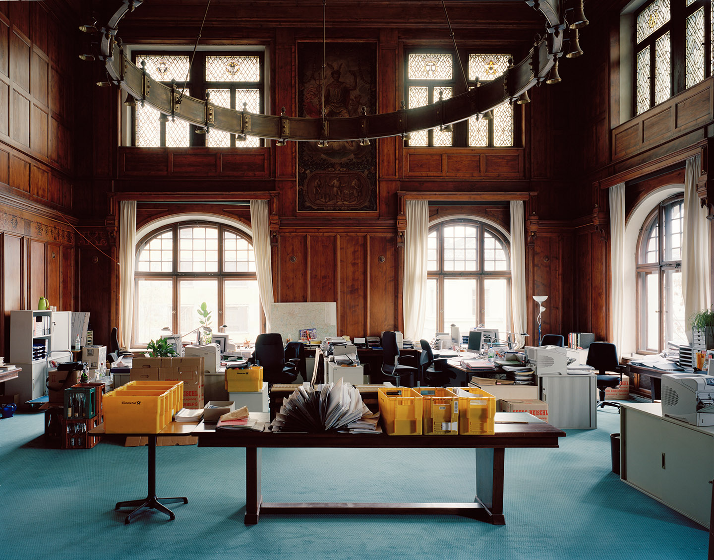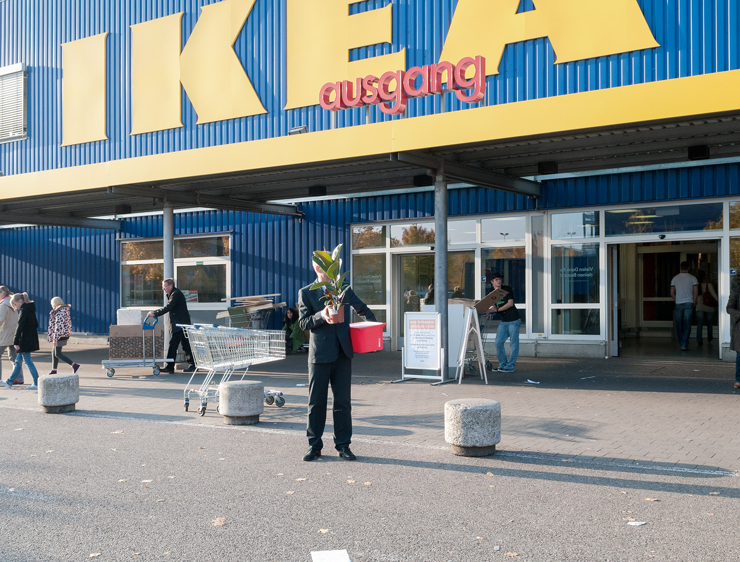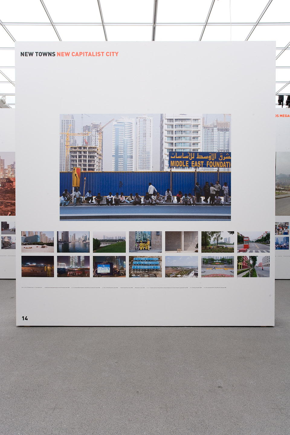 In contrast to the small-format black-and-white photographs in the publication, the large-format colour photographs for the exhibition are overviews of specific spaces. The space becomes apparent as a complex situation beyond its material concreteness. The interaction in the architectural space, visible in depth, testifies to the urban fabric and context beyond the frame of the photograph. Situational work, the development of actions with people on site, is part of my architectural photography.